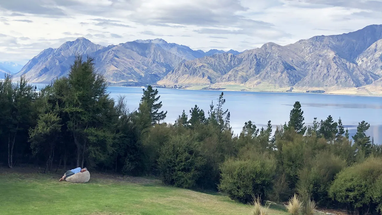 Lake Hawea View is a 5-star lodge at Lake Hawea (10mins from Wanaka, 70mins from Queenstown airport). Help with transport/carpool can be arranged.
